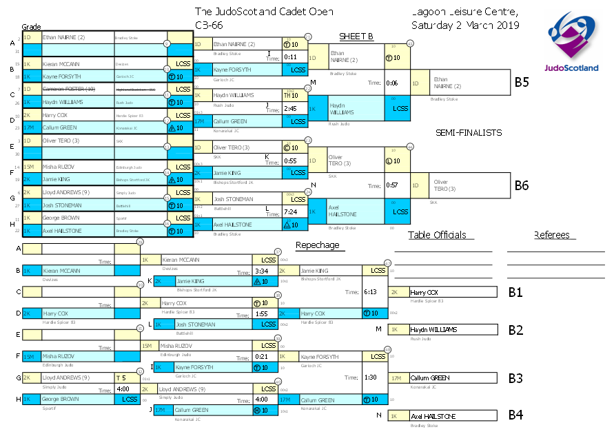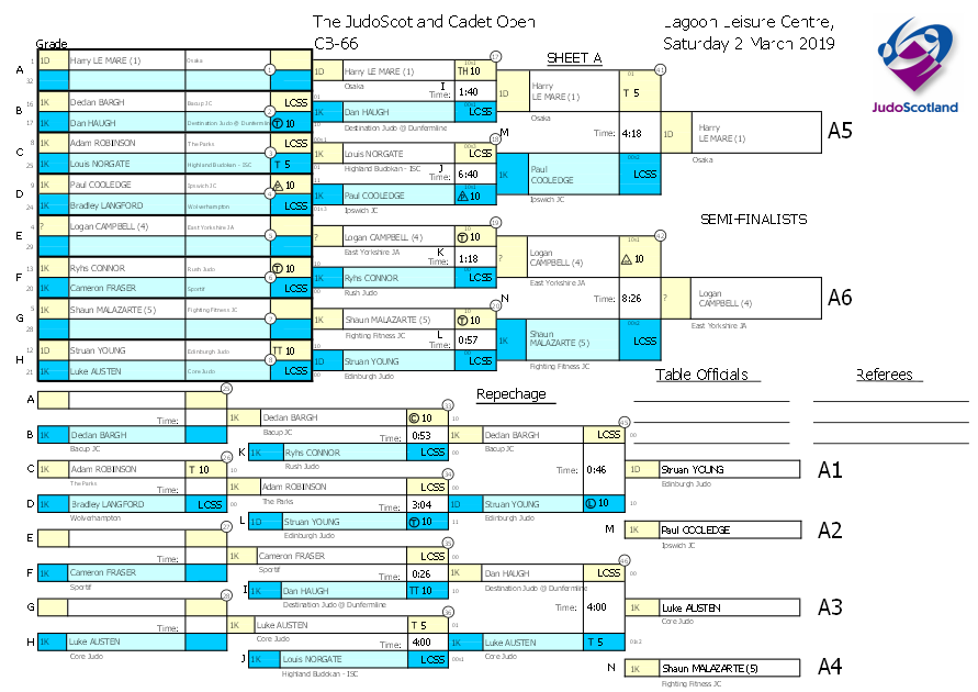 The JudoScotland Cadet Open Saturday 2 March 2019 Lagoon Leisure Centre,