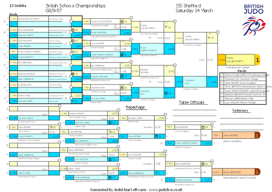 British Schools Championships Saturday 14 March EIS Sheffield