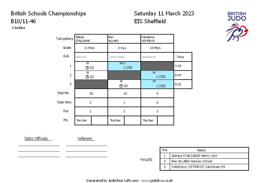 British Schools Championships Saturday 11 March 2023 EIS Sheffield