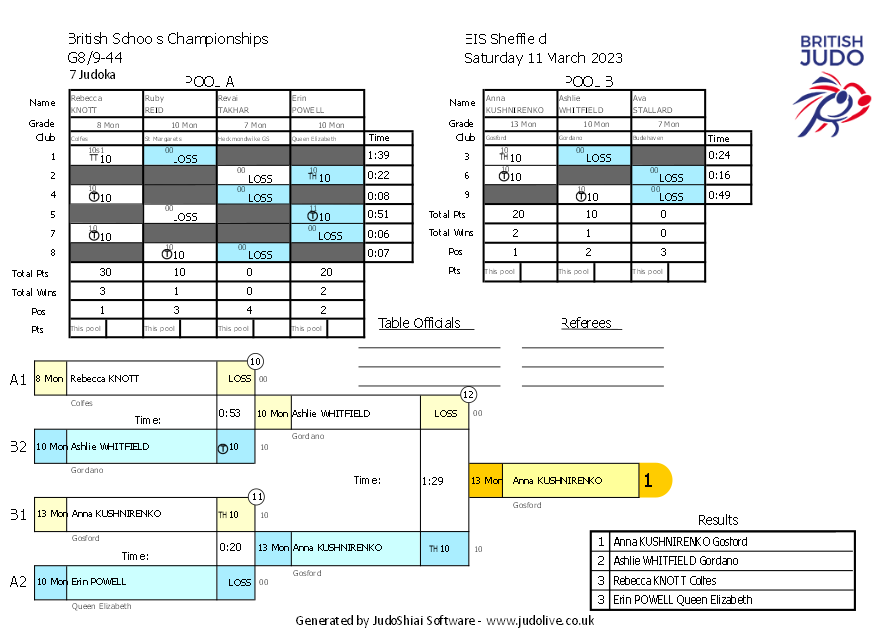 British Schools Championships Saturday 11 March 2023 EIS Sheffield