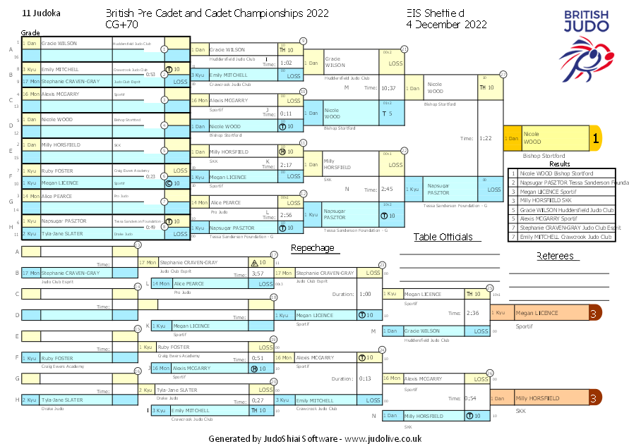 British Pre Cadet and Cadet Championships 2022 4 December 2022 EIS Sheffield
