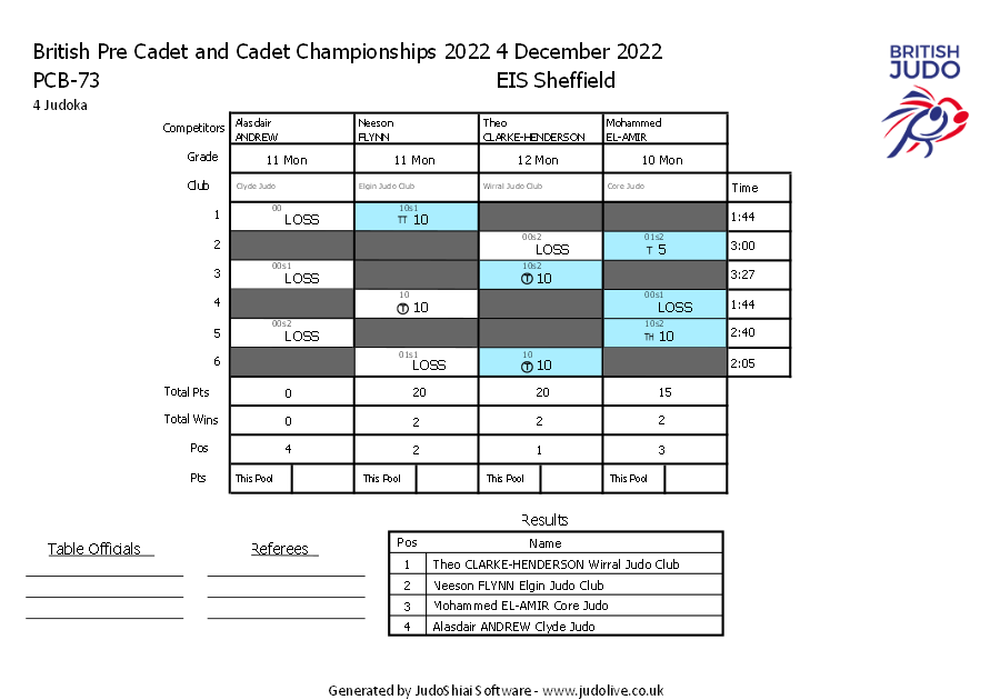 British Pre Cadet and Cadet Championships 2022 4 December 2022 EIS Sheffield