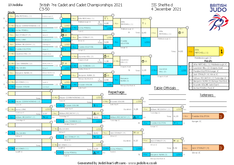 British Pre Cadet and Cadet Championships 2021 4 December 2021 EIS Sheffield