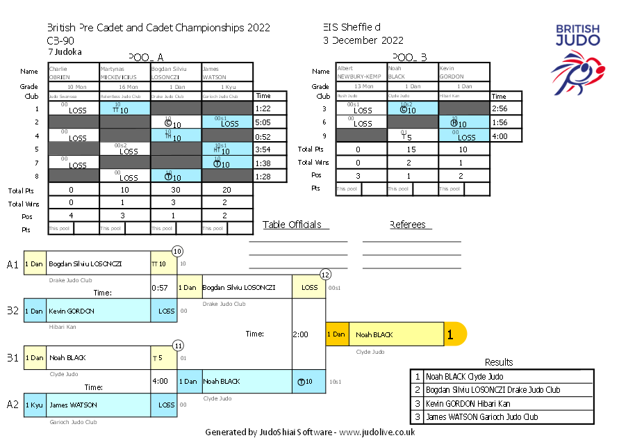 British Pre Cadet and Cadet Championships 2022 3 December 2022 EIS Sheffield