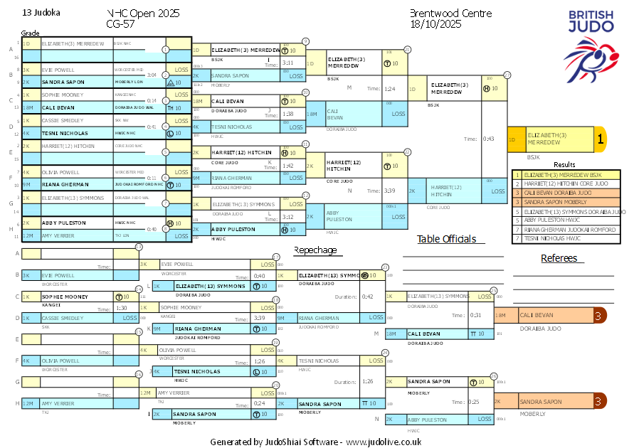 NHC Open 2025 18/10/2025 Brentwood Centre