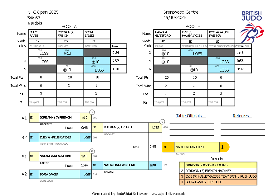 NHC Open 2025 19/10/2025 Brentwood Centre