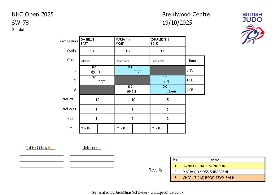 NHC Open 2025 19/10/2025 Brentwood Centre