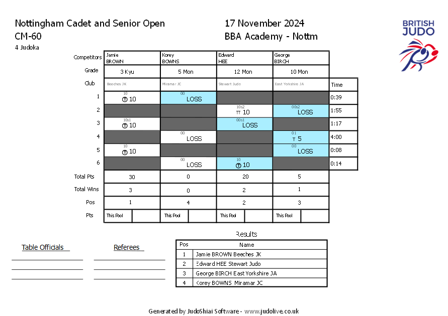 Nottingham Cadet and Senior Open 17 November 2024 BBA Academy - Nottm