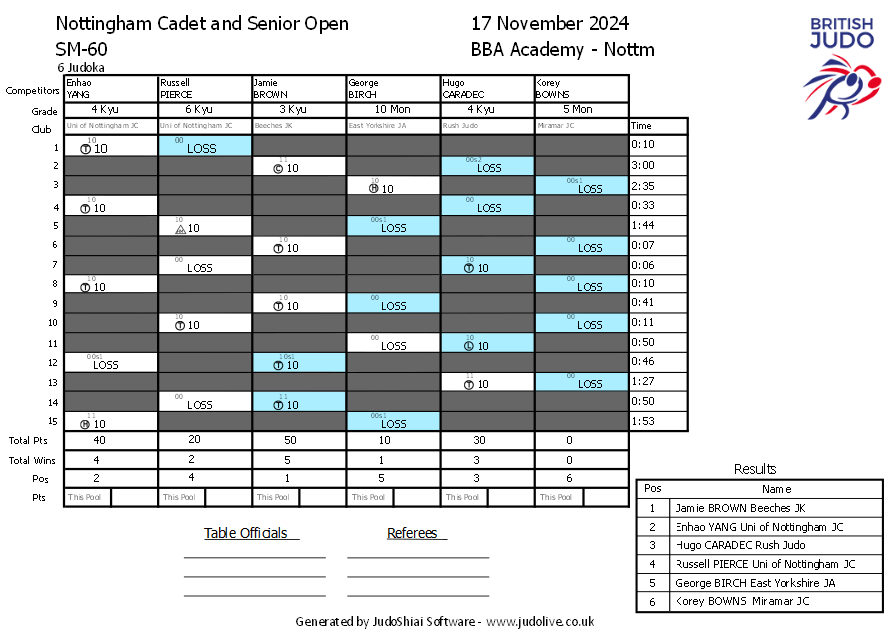 Nottingham Cadet and Senior Open 17 November 2024 BBA Academy - Nottm