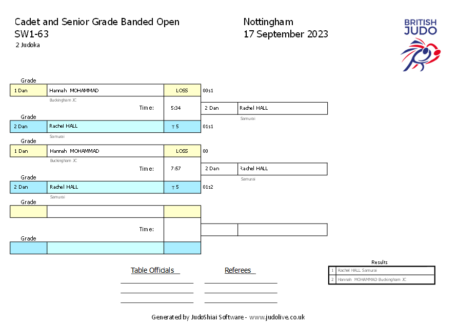 Cadet and Senior Grade Banded Open 17 September 2023 Nottingham