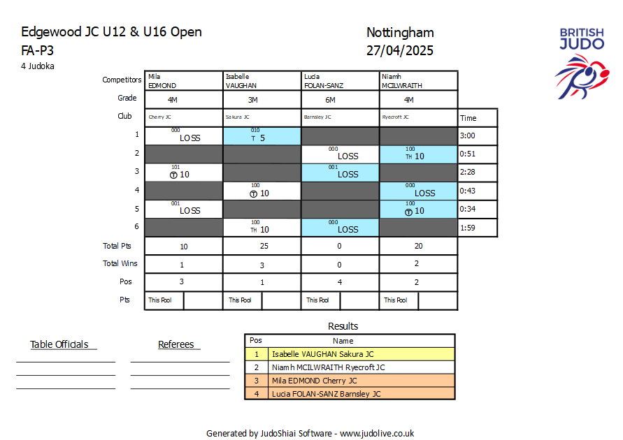 Edgewood JC U12 & U16 Open 27/04/2025 Nottingham
