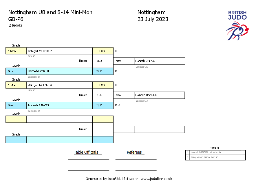 Nottingham U8 and 8-14 Mini-Mon 23 July 2023 Nottingham