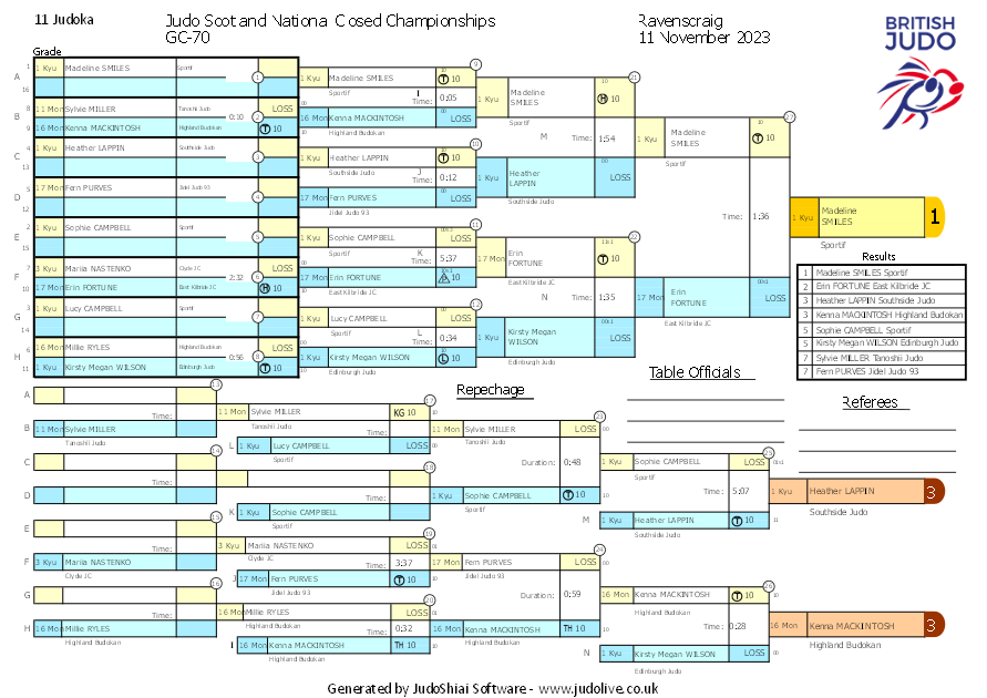 Judo Scotland National Closed Championships 11 November 2023 Ravenscraig
