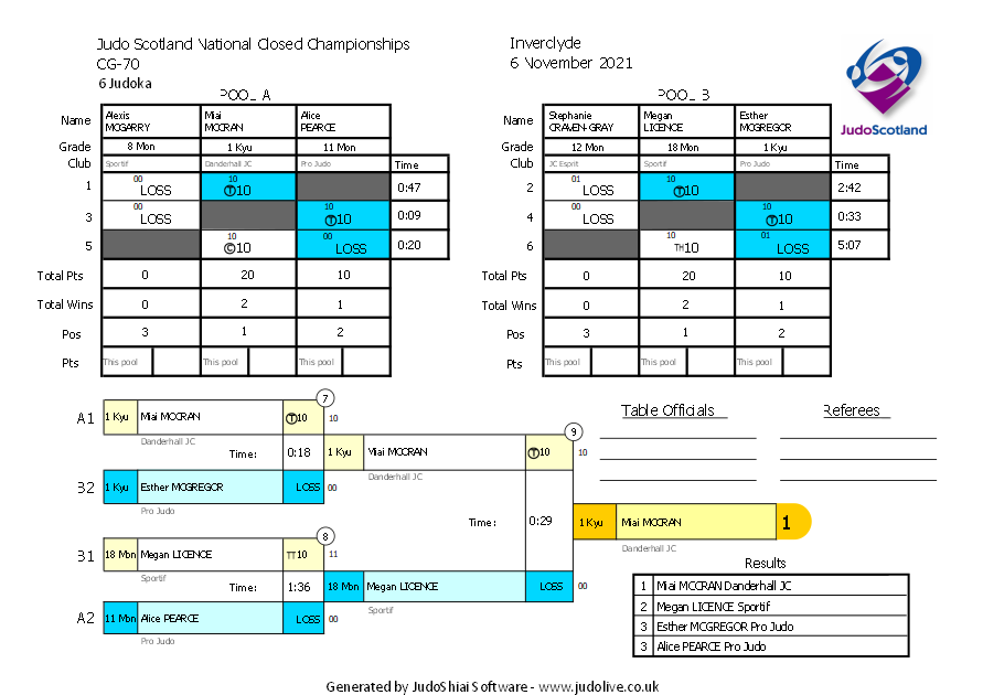 Judo Scotland National Closed Championships 6 November 2021 Inverclyde