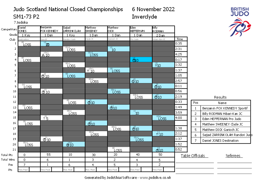 Judo Scotland National Closed Championships 6 November 2022 Inverclyde