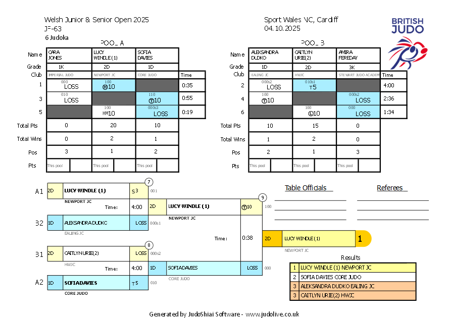 Welsh Junior & Senior Open 2025 04.10.2025 Sport Wales NC, Cardiff
