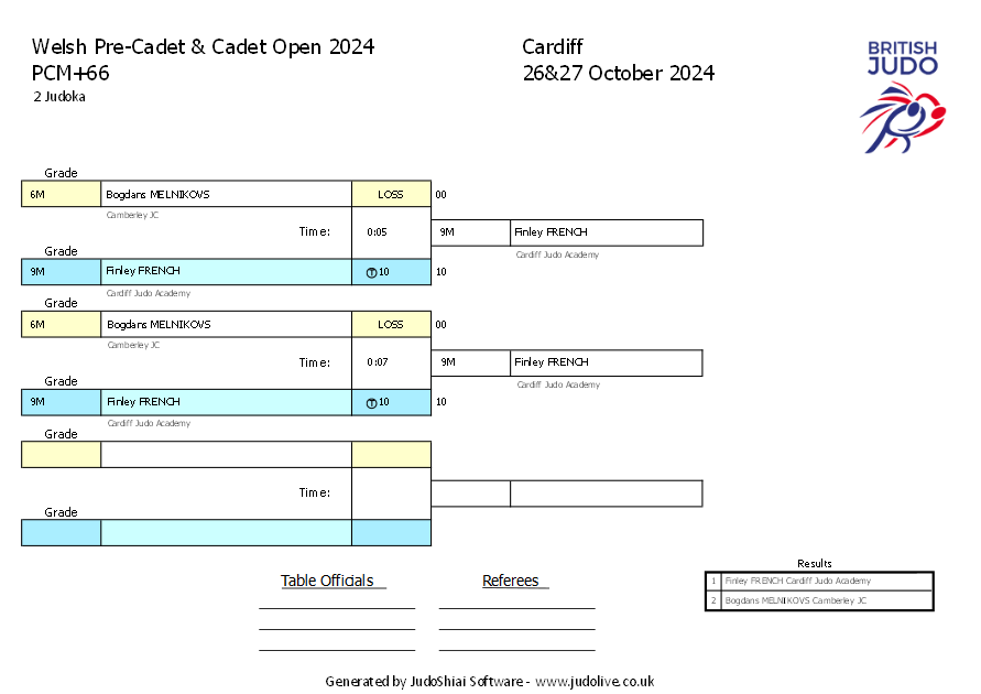 Welsh Pre-Cadet & Cadet Open 2024 26&27 October 2024 Cardiff