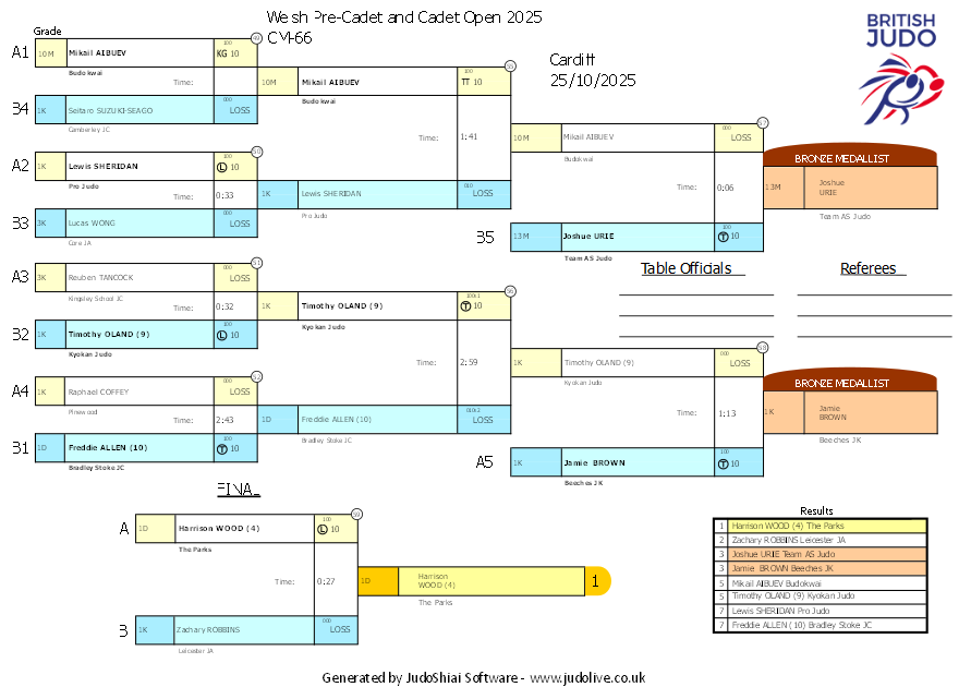 Welsh Pre-Cadet and Cadet Open 2025 25/10/2025 Cardiff